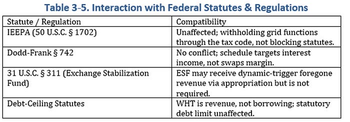 Section 3 takeaway: The maturity grid slots cleanly into the Code, survives constitutional scrutiny, and leverages the last-in-time doctrine to override treaty rates only where systemic surplus behavior warrants — minimizing diplomatic fallout while maximizing policy leverage.