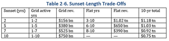 Congress can fine-tune the revenue-market stability trade-off simply by changing the grid’s sunset date (see table 2–6).